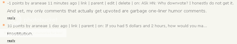 - comments that have a high excitement to information ratio, such as brief comments that include profanity or attitude, and of course garbage one-liner humor comments. But not good one-line comments (such as the best comeback of all time), and usually not the kind that are nested two or more levels deep in the tree.